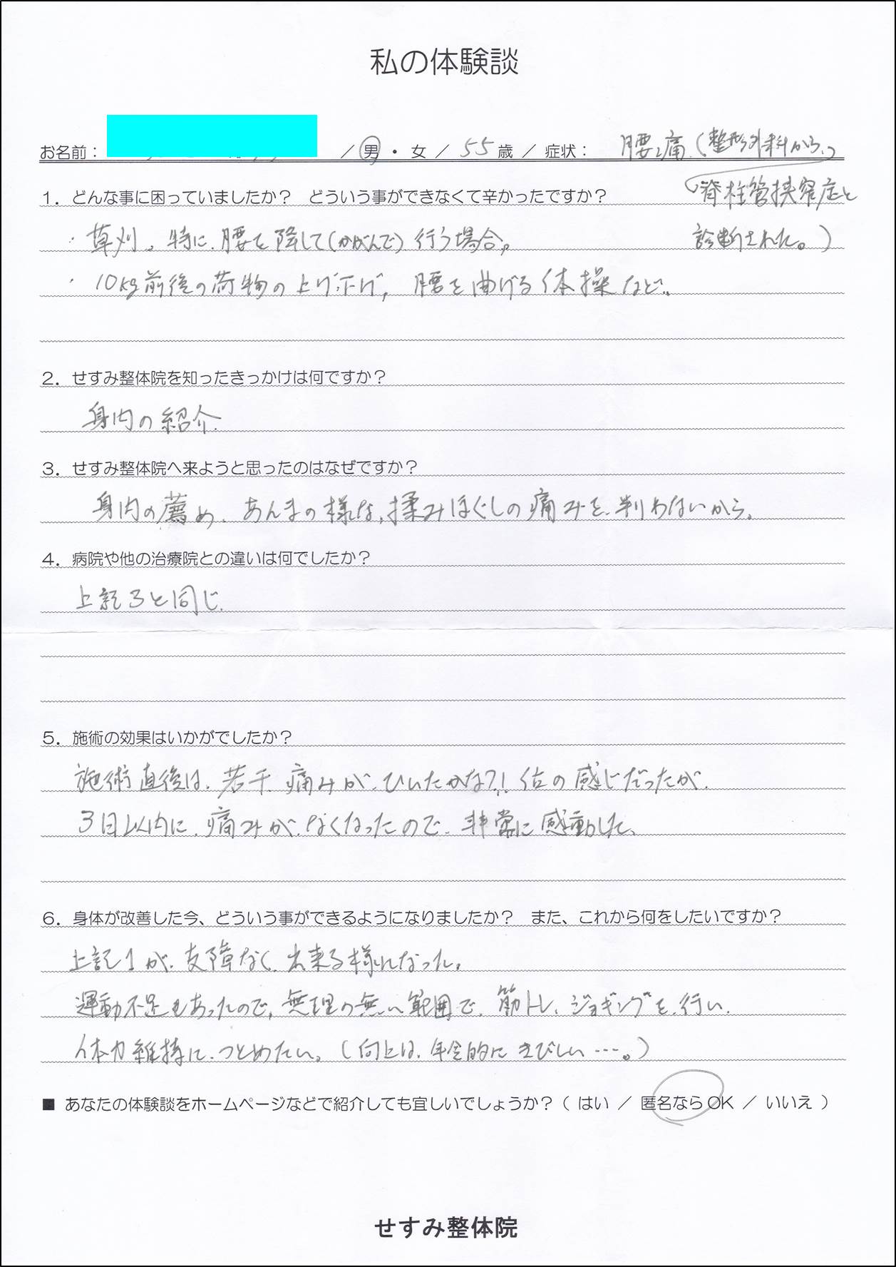 04 せすみ整体院の良かったところは何ですか? 他院との違いがありましたか?