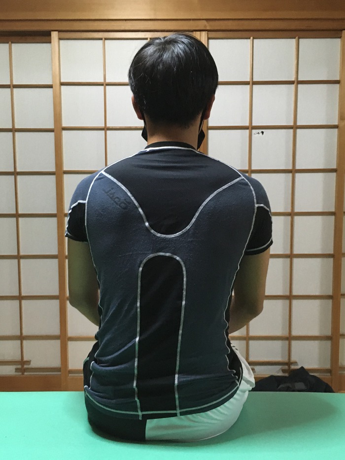 右肩、左肩、首の動きが改善しており、座姿勢もかなり改善されていたので施術終了。